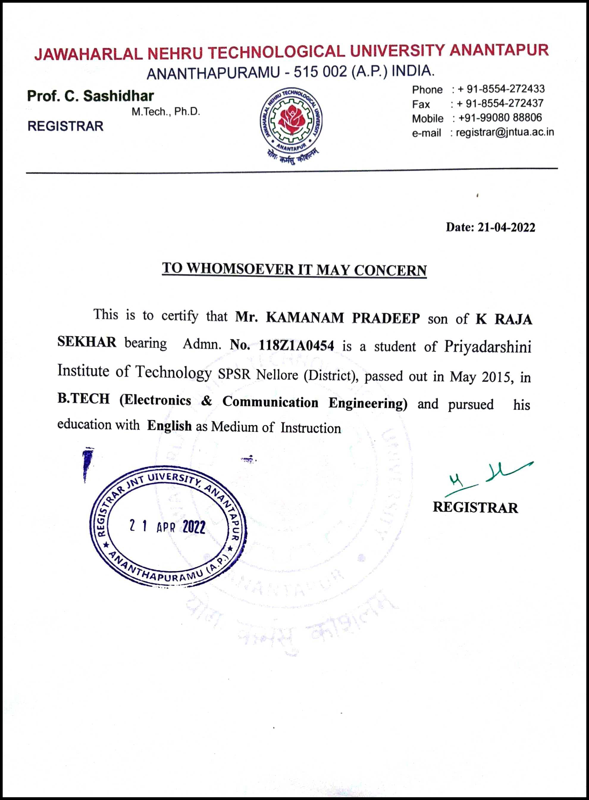 7. How much time β does our University take? Each university follows their own timelines. For E.g., Jawaharlal Nehru Technological University Hyderabad(JNTUH) takes π 5 working days. N.T.R University Of Health Sciences(NTRUHS) takes π 10-20 working days. Andhra University(AU) takes π 7-15 working days etc…