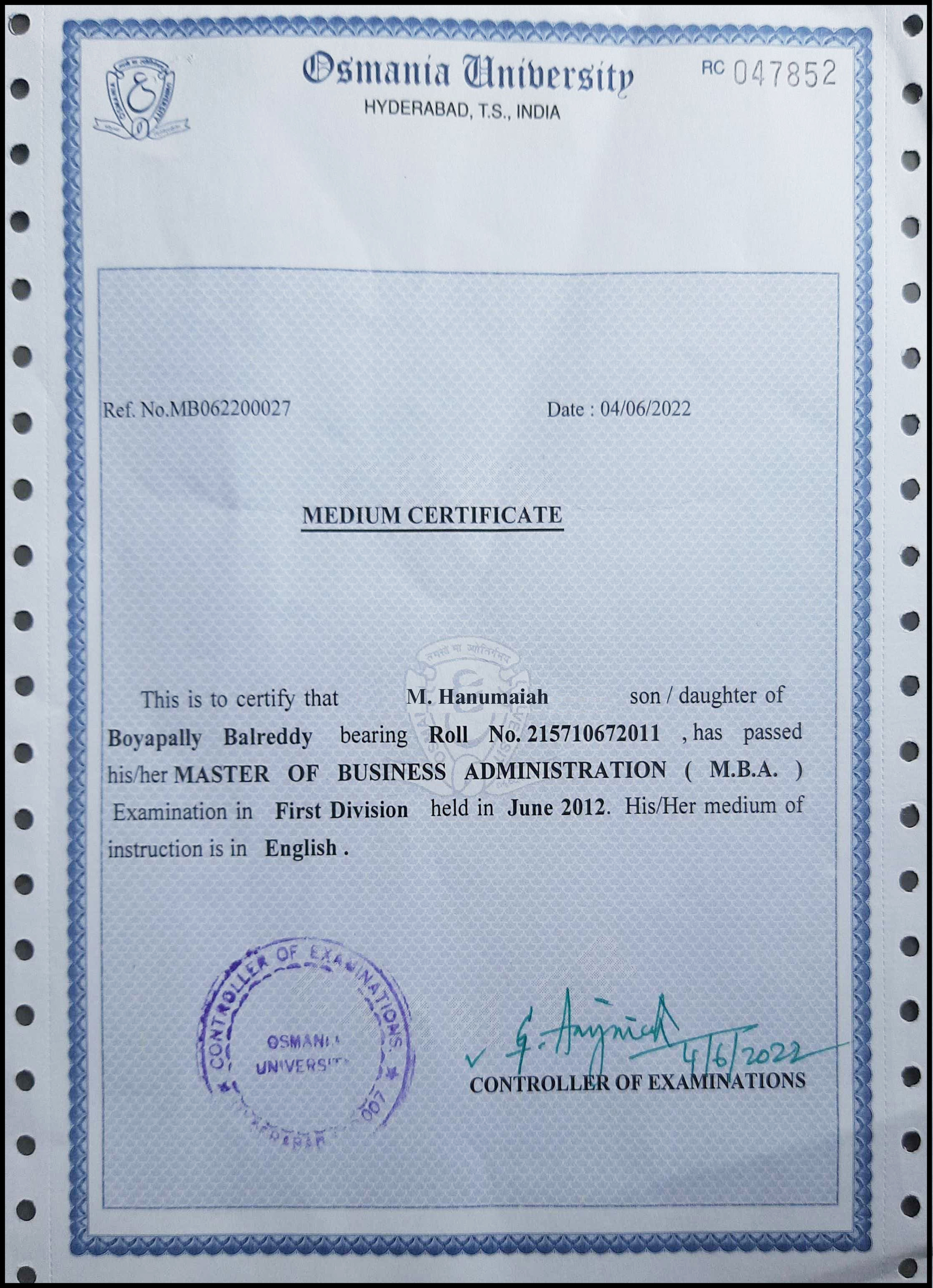 1. DudeπββοΈ, straight to the point. what is a Medium Certificate? Medium of instruction (MOI) is a certificate that shows whether the student studied in English Medium or Not.